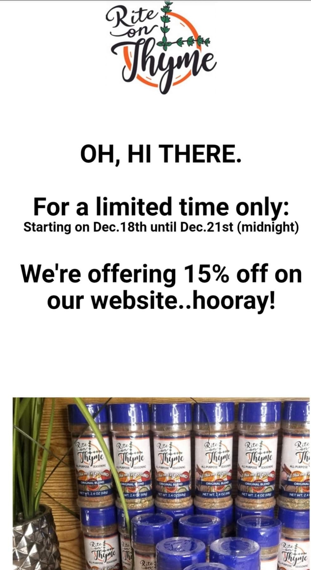 That’s a 3 day sale and some change, so don’t delay, put Rite on Thyme seasoning blend in your rotation today!